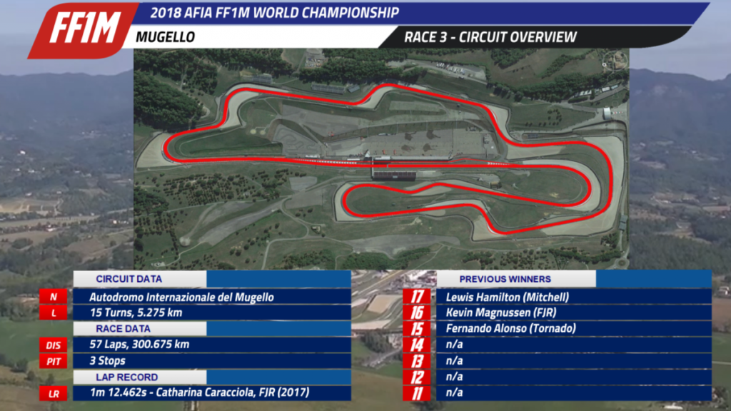 The start of a three-race European leg begins at a country that doesn’t have a suitable racetrack, so their Italian neighbours get a second race, located at a circuit that has established itself on the FF1M calendar. Since its debut in 2015, teams and drivers have thoroughly enjoyed the fast, flowing nature of Mugello with the slowest point still being above the speed limits on the Autostrade. It is also the first home race for the championship leader, but his points gap could’ve been even higher.